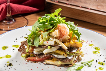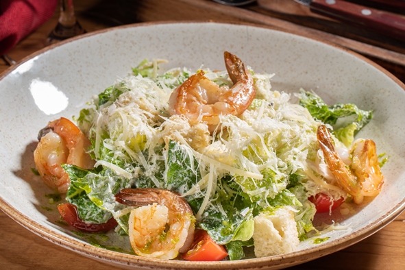 Салат Цезарь с двойными тигровыми креветками
