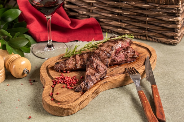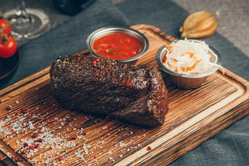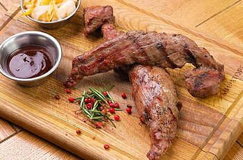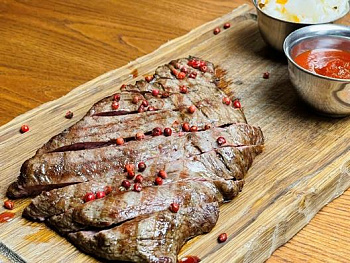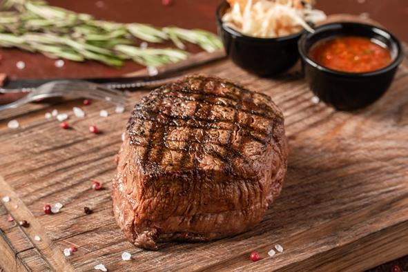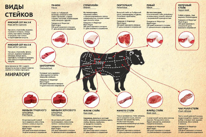 «премиальный» стейк, который нарезается из отруба тонкий край, состоящего из единственной мышцы. По периметру стейка проходит тонкая полоска жира, придающая мясу сочность.
